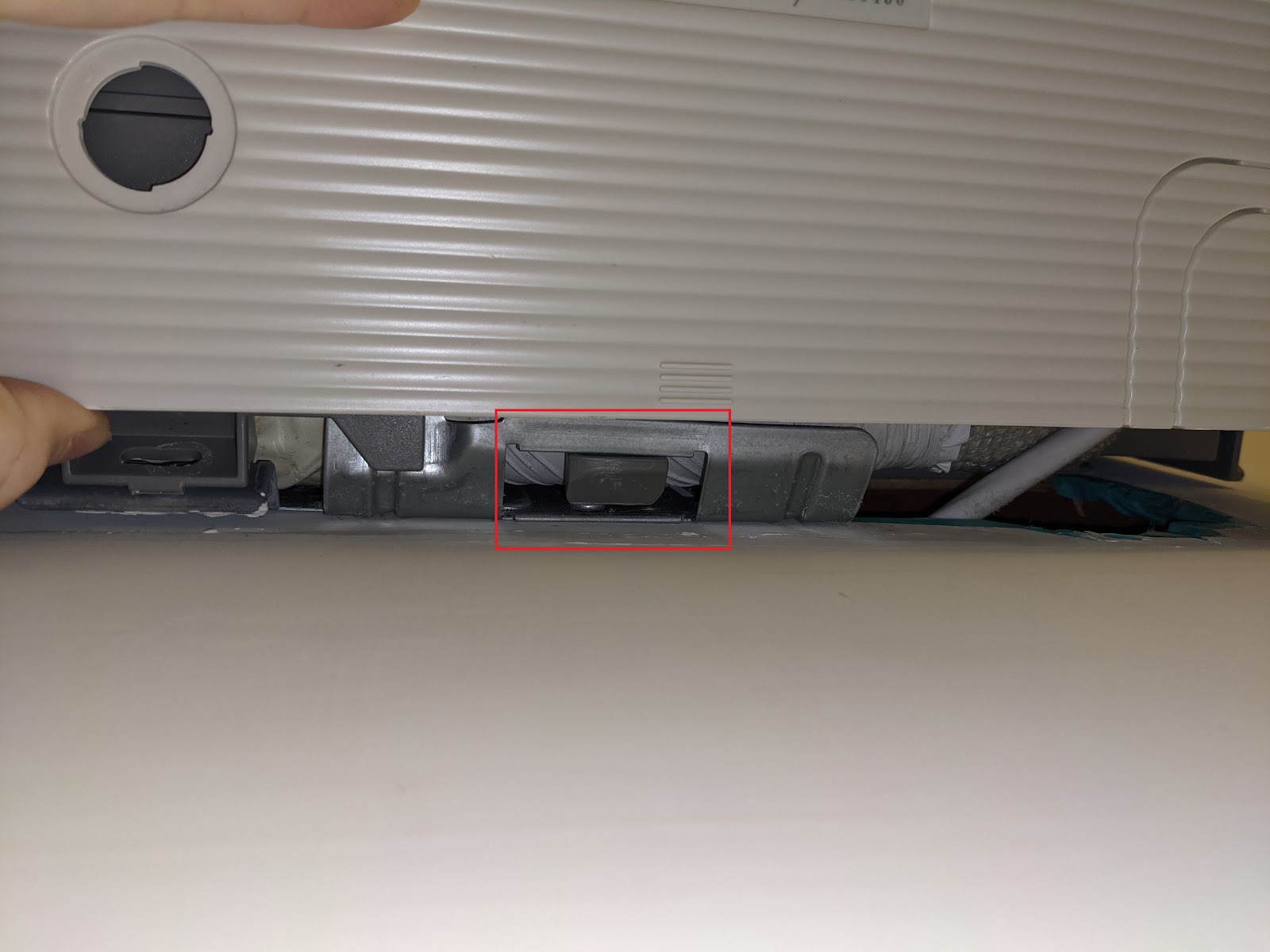 螺絲拆掉後應該就可以把室內機稍稍往前拉了,可以看到下方有幾個塑膠卡扣,把卡扣鬆開就可將室內機再往外拉一點。